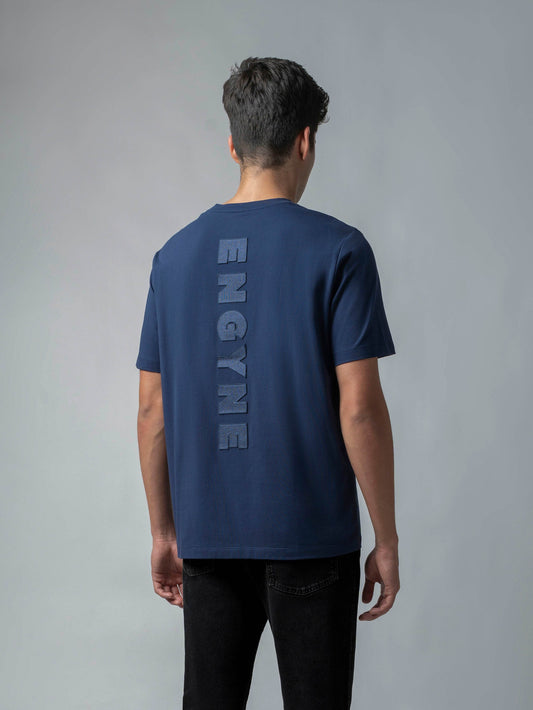 Regular-fit Engyne T-shirt in Supima Cotton Lycra Interlock with Flat-Knit Neck Rib and HD Branding Dark Blue