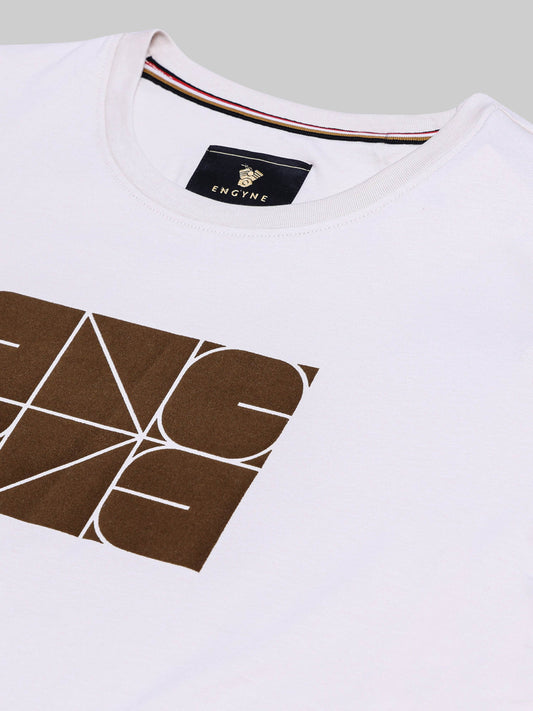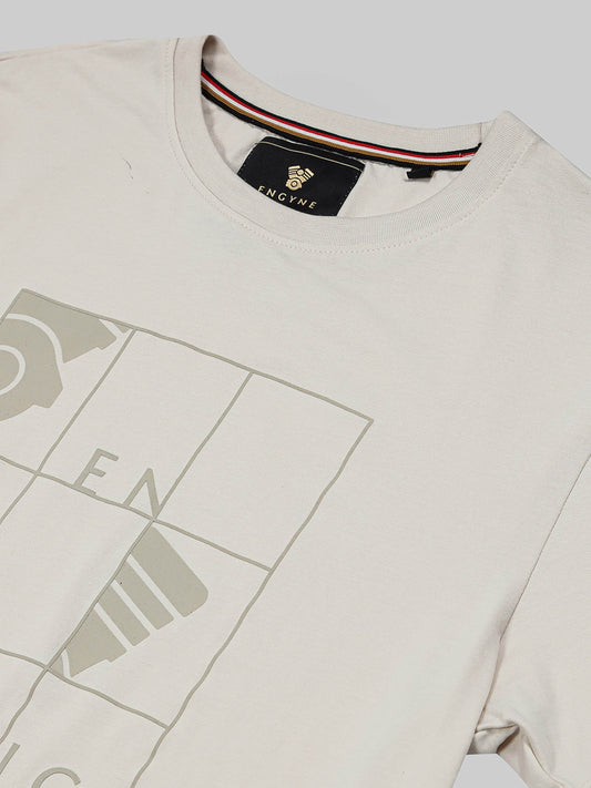 Rougen Cotton Lycra with HD and Non-PVC Chest Print Beige T-shirt
