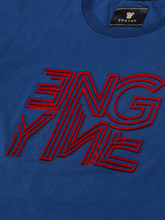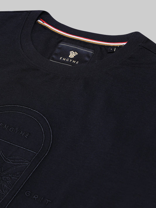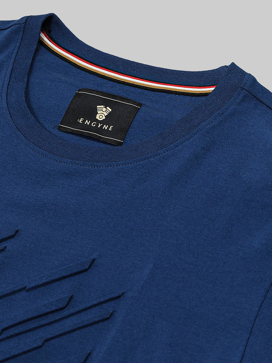 Rougen Cotton Lycra with Embossed Dark Blue T-shirt