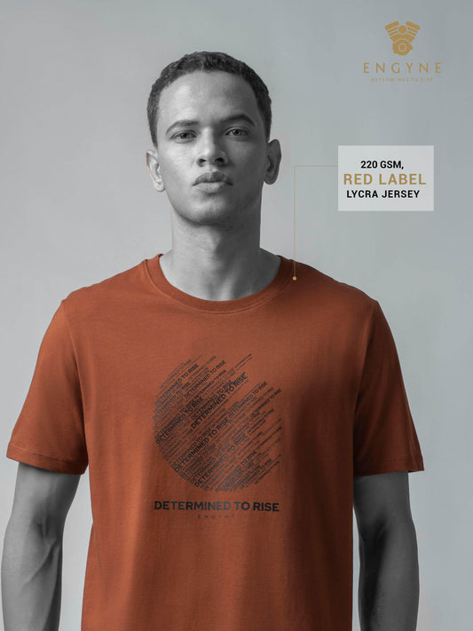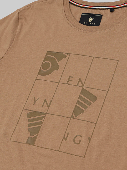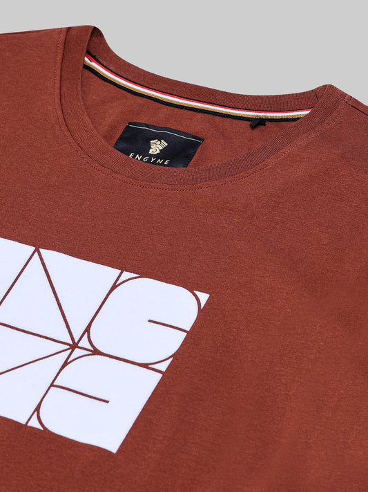 Rougen Cotton Lycra with Sticker Flock Print Brown T-shirt