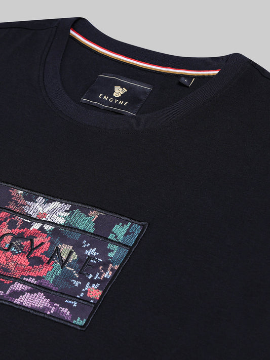 Supima Cotton Lycra with Sublimation-Printed Chest Appliqué and Embroidery Black T-shirt
