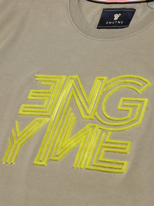 Rougen Cotton Lycra with Sticker Flock Print Beige T-shirt