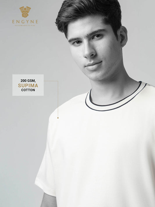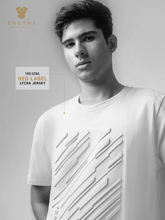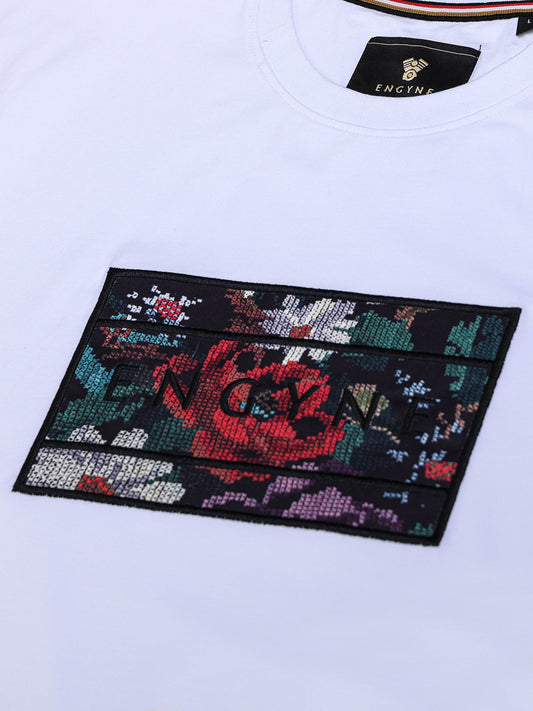 Supima Cotton Lycra with Sublimation-Printed Chest Appliqué and Embroidery White T-shirt