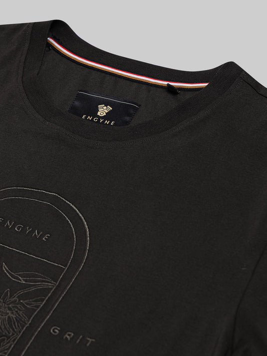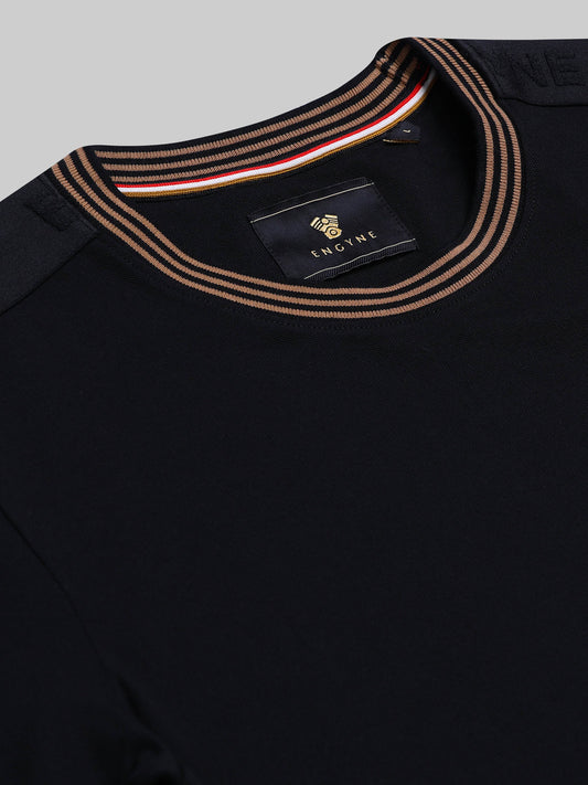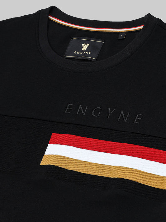 Supima Cotton Lycra Interlock with Engyne Signature Flat-Knit Rib Chest Panel and Embroidered Branding Black T-shirt