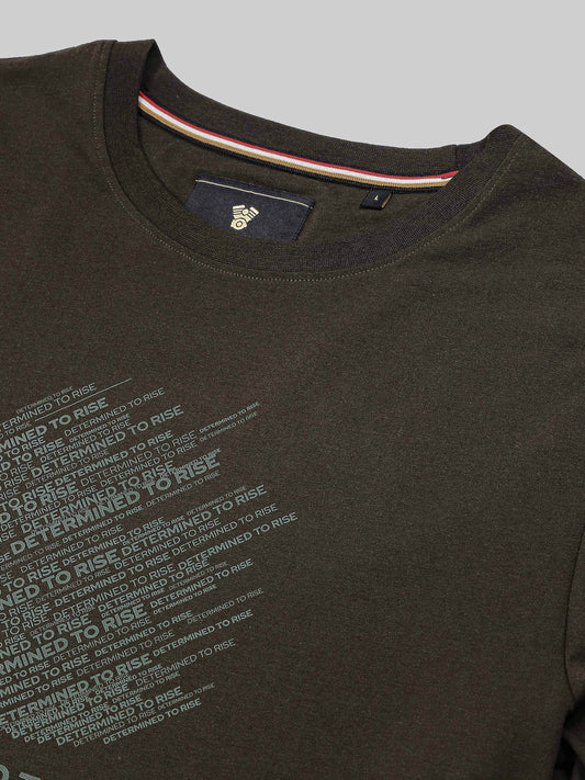 Rougen Cotton Lycra with HD and Non-PVC Chest Print Khaki T-shirt