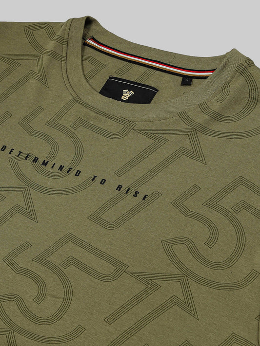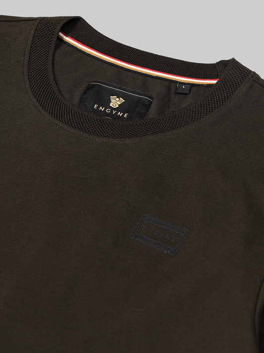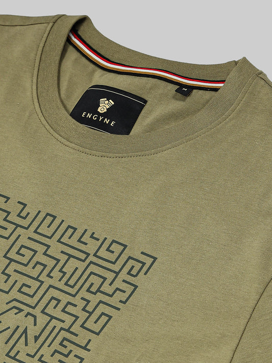 Minimal Non-PVC Chest Print Cotton Lycra Olive T-shirt