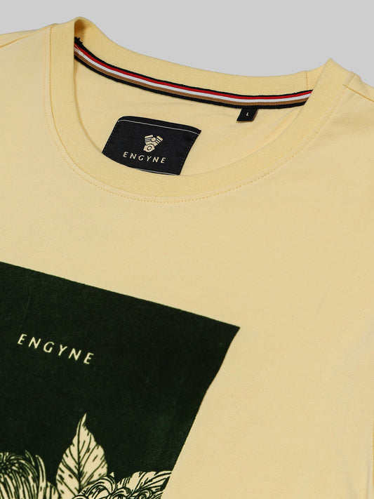 Rougen Cotton Lycra with Flock Print at Chest Light Yellow T-shirt