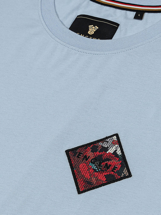 Rougen Cotton Lycra with Sublimation Print and Embroidered Badge Light Blue T-shirt