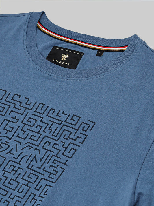 Minimal HD Chest Print Cotton Lycra Light Gasoline T-shirt