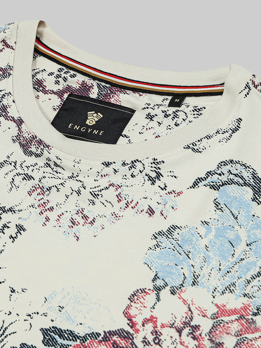 Supima Cotton Lycra with Rotary All-Over Print Beige T-shirt