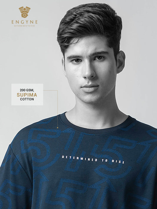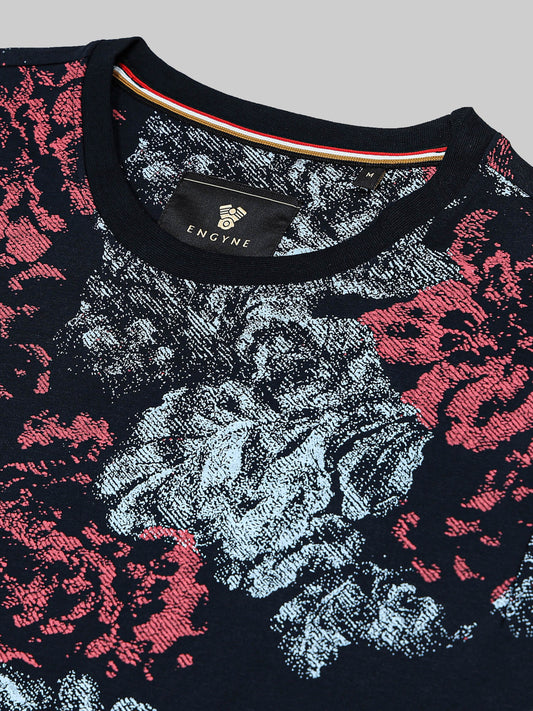 Supima Cotton Lycra with Rotary All-Over Print Navy T-shirt