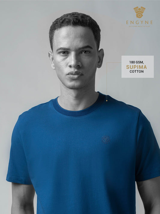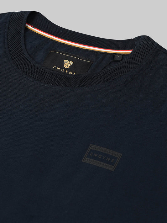Supima Cotton Lycra Tee with HD Branding and Textured Neck Rib Dark Blue T-shirt