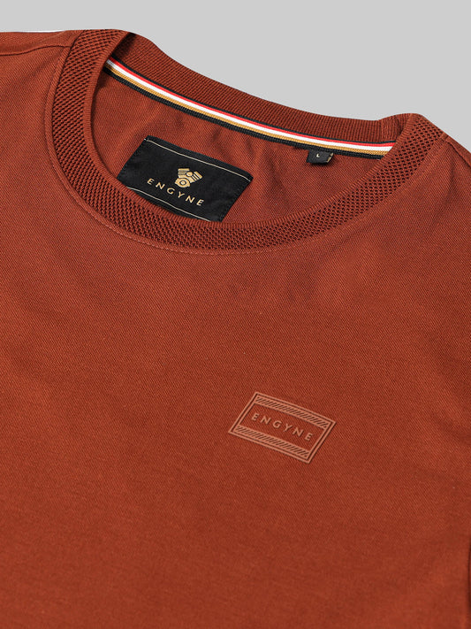 Minimal Non-PVC Chest Print Cotton Lycra Brown T-shirt