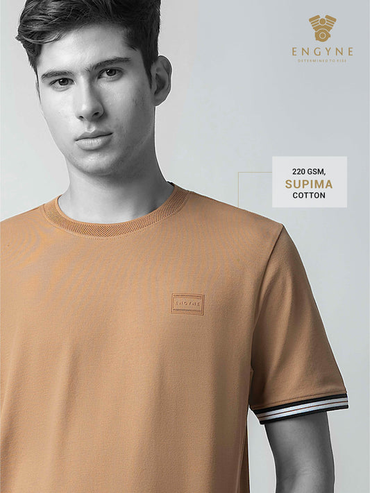 Supima Cotton Lycra Interlock with Flat-Knit Neck Rib and HD Branding Beige T-shirt