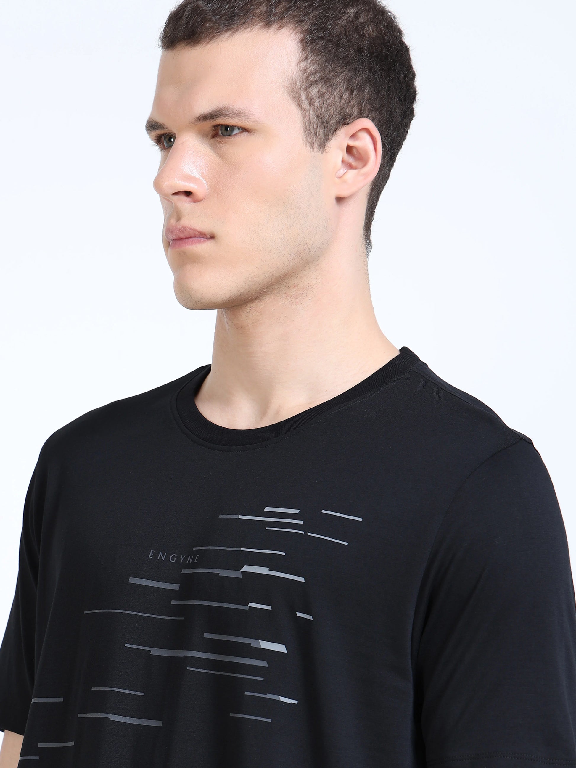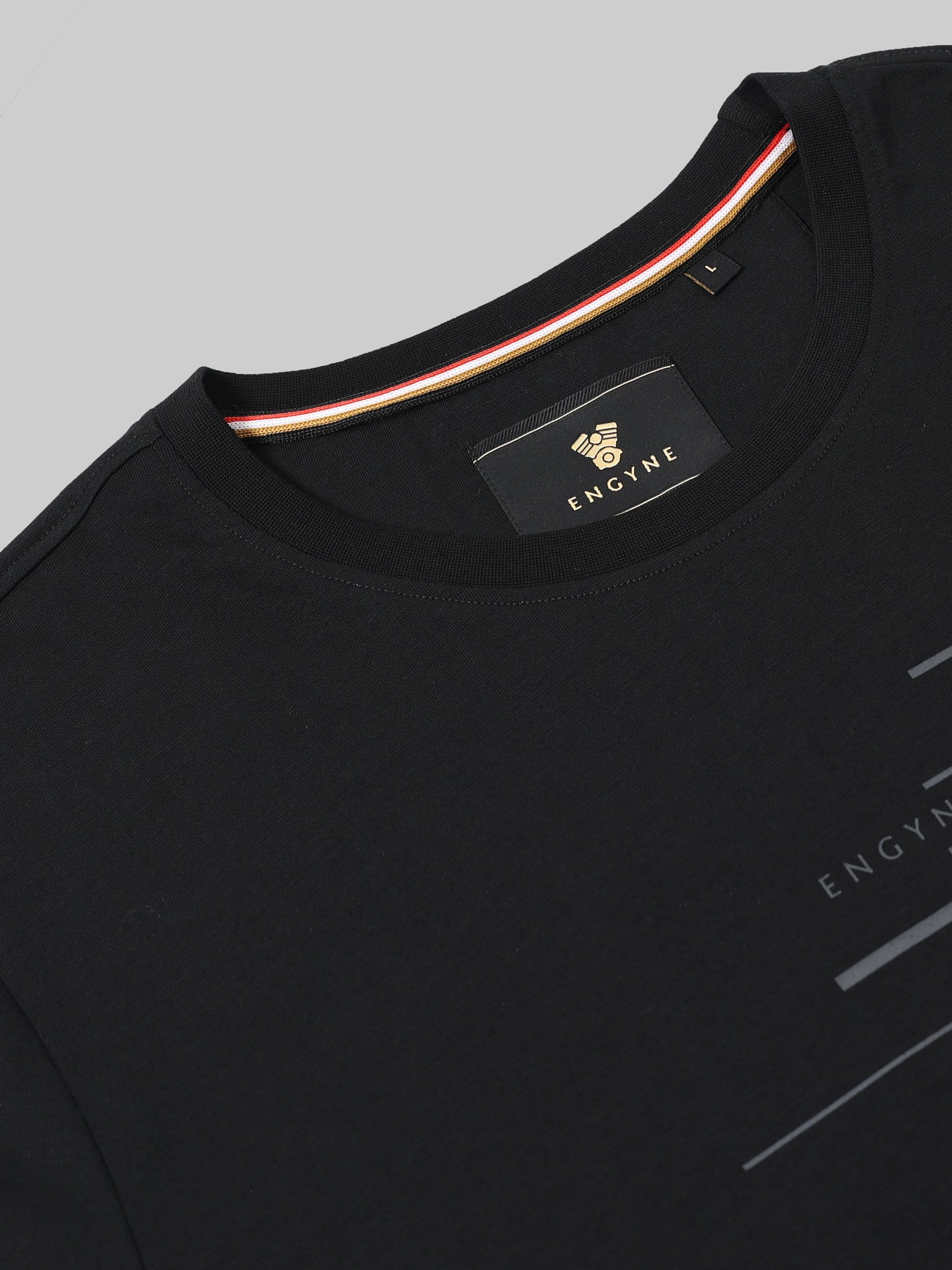 Crafted from the finest Supima cotton blended with Lycra, this T-shirt offers exceptional softness, stretch, and lasting comfort. The design is elevated with a two-colour tonal geometric placement print, created using a non-PVC technique for a refined, sustainable finish.