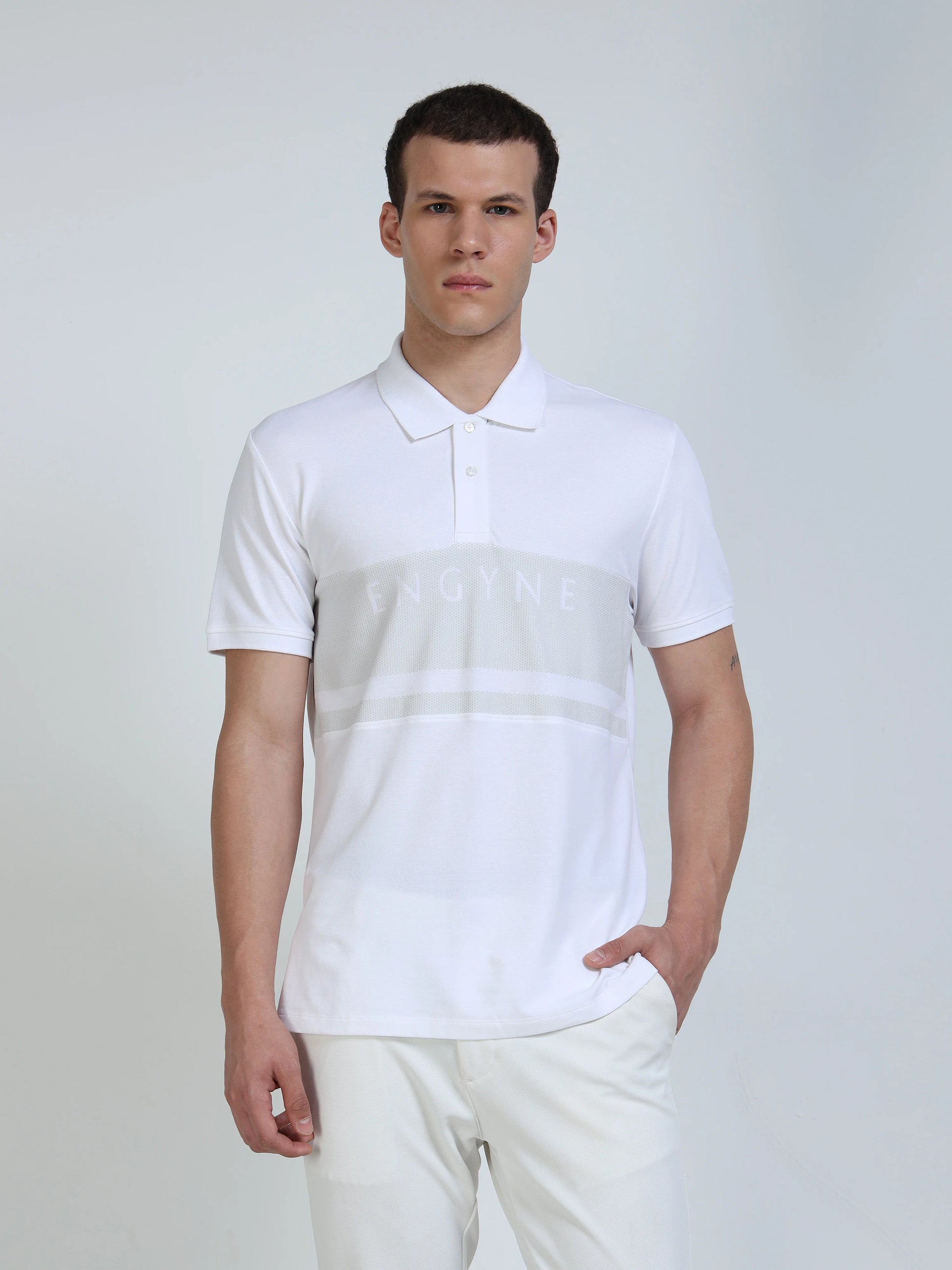 Engyne Monogram Stripe Polo White