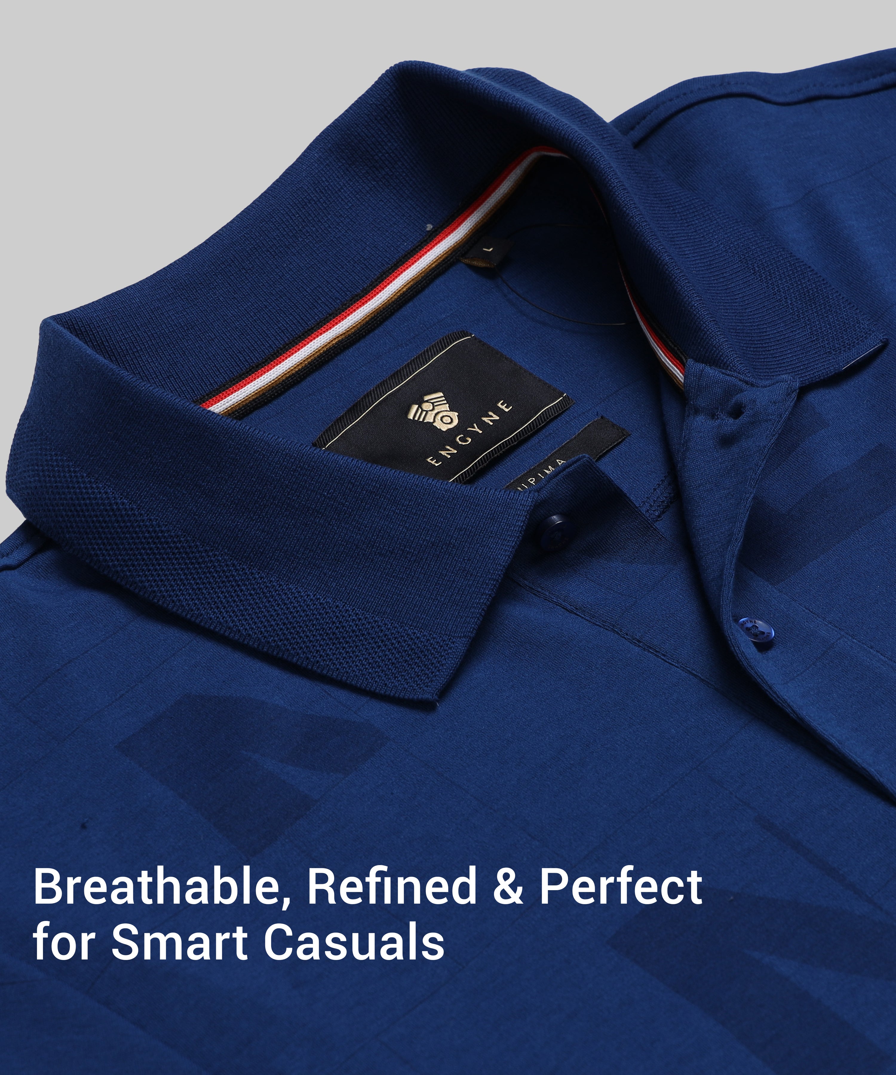 Supima Cotton Interlock with Special Engyne Rotary Print Tech and Honeycomb Textured Collar Dark Blue Polo