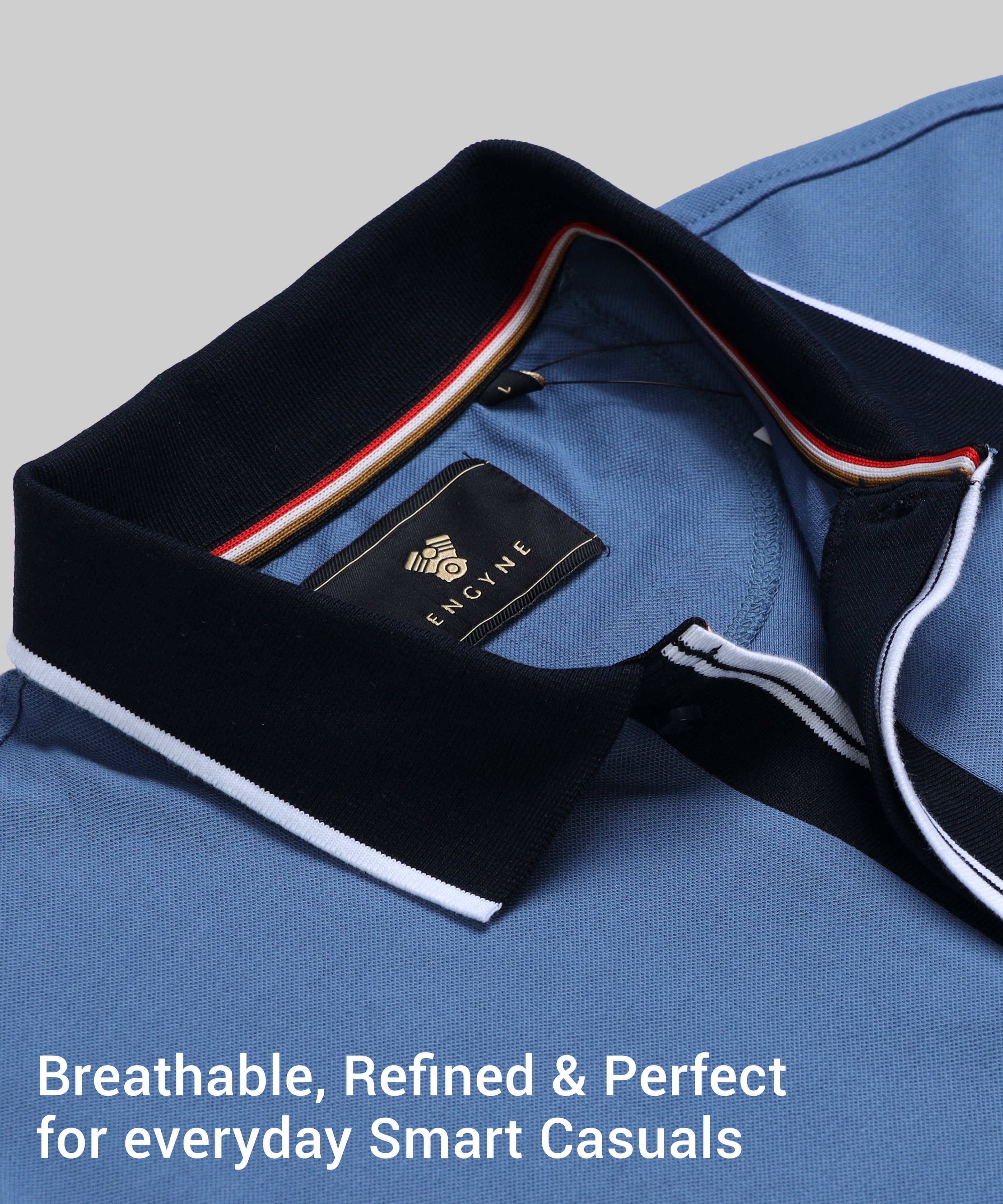 Rougen Cotton Lycra with Contrast Flat Knit Placket and Tipped Collar Gasoline Polo