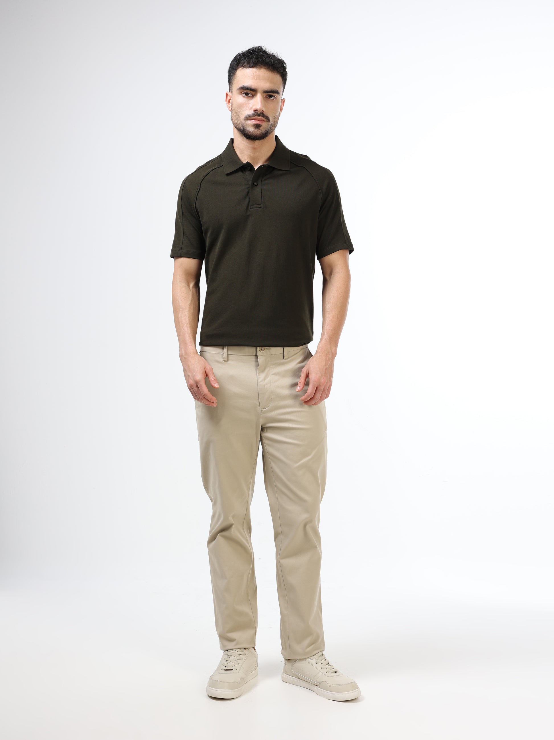 Regular Fit Polo with Cut and Sew Sleeves and DTM Corded Piping in Supima Cotton Lycra Piqué and Interlock - Olive