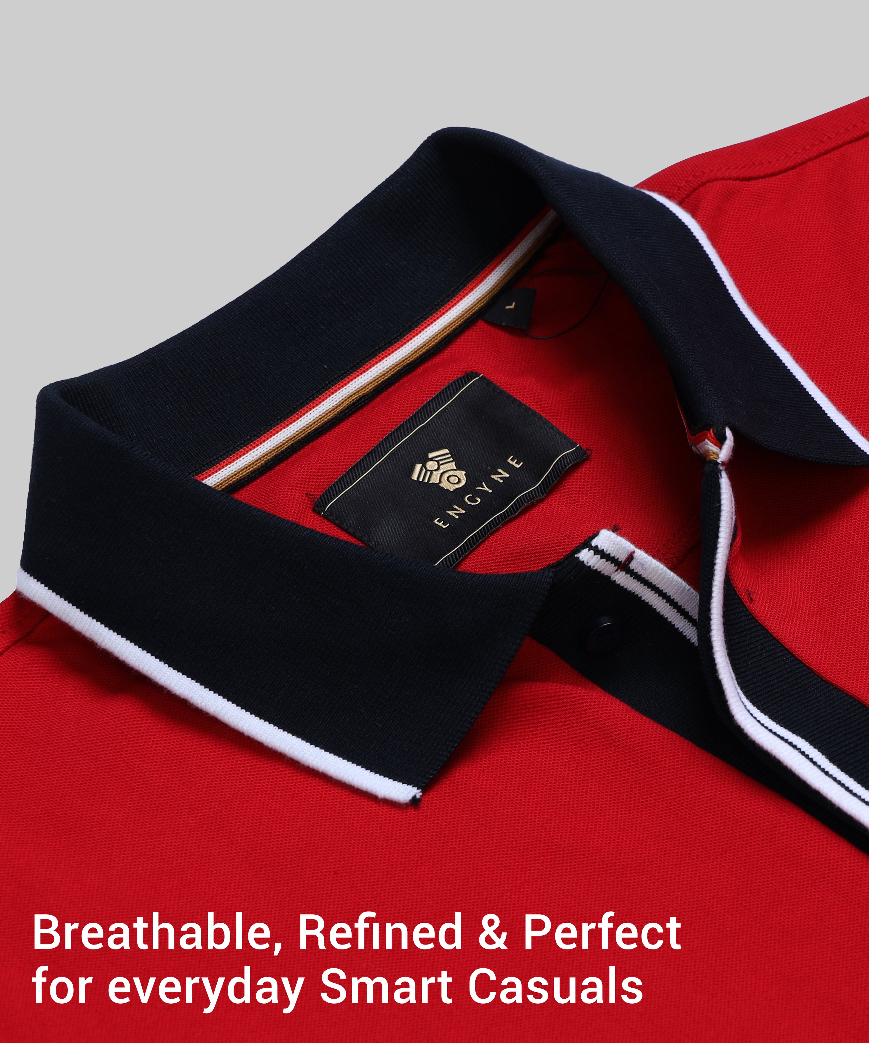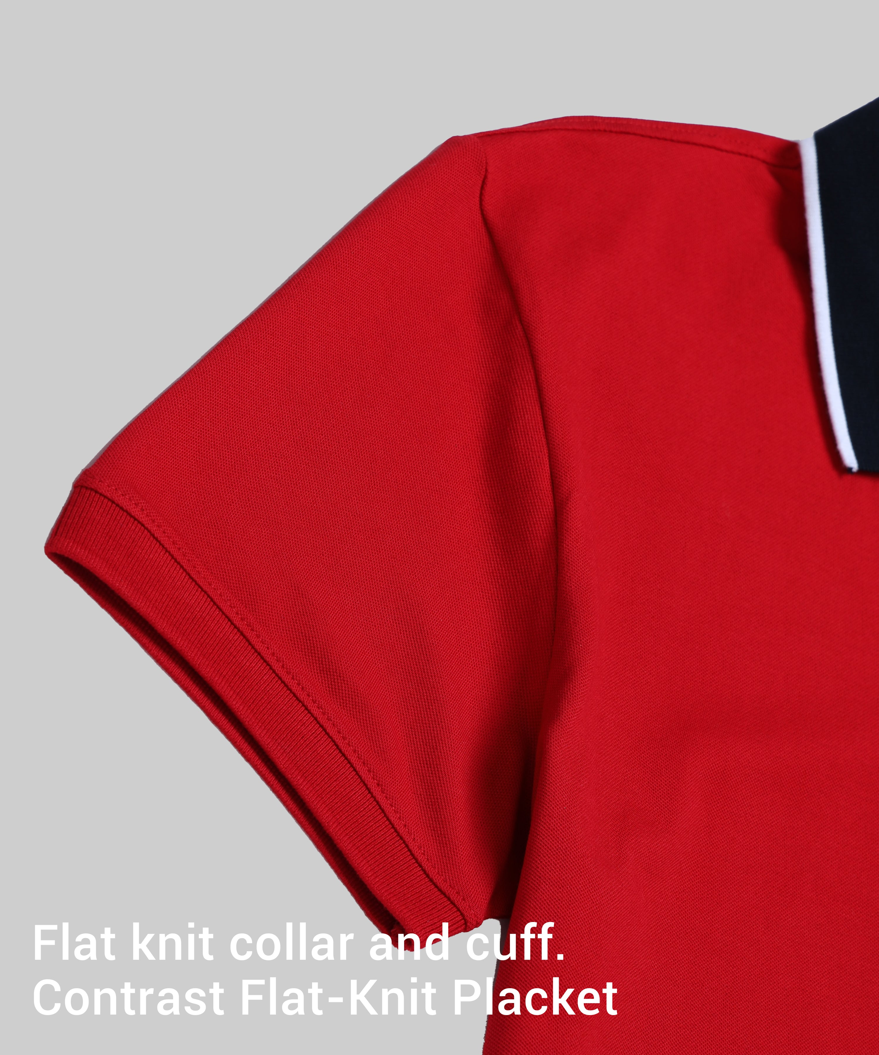 Rougen Cotton Lycra with Contrast Flat Knit Placket and Tipped Collar Red Polo